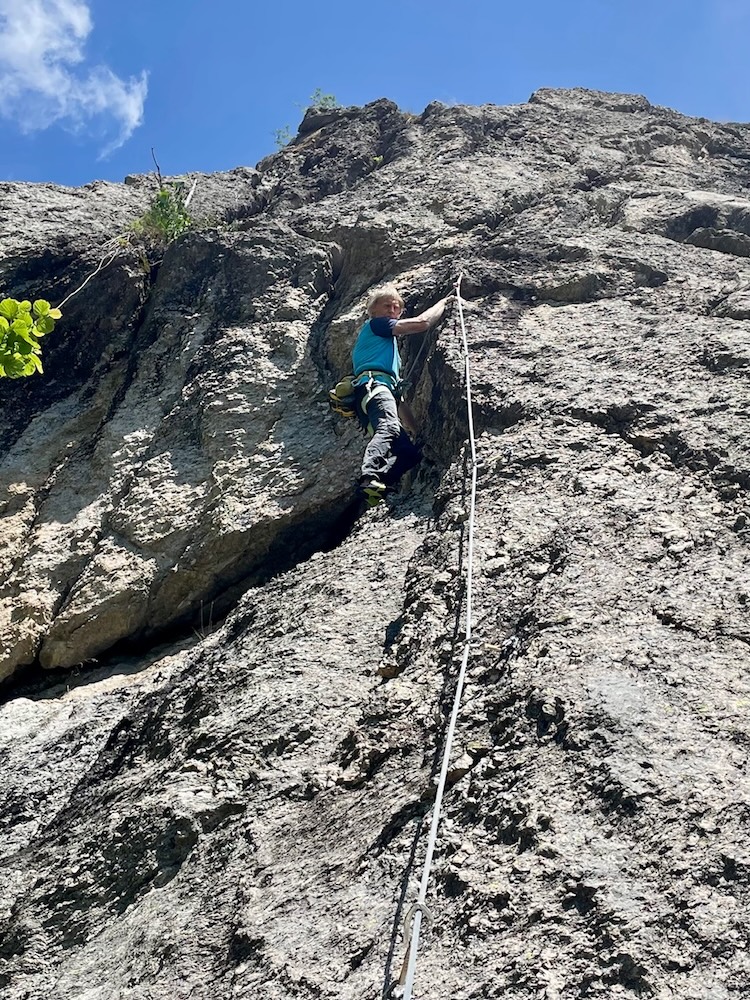Oggi si va alla falesia di “Gias Gruppetti” una bella falesia riscoperta da “Arrampigranda” a quasi mezzora dal Rifugio, attrezzata perfettamente per scalare in sicurezza in un contesto alpino e carsico tra i più suggestivi della zona.
