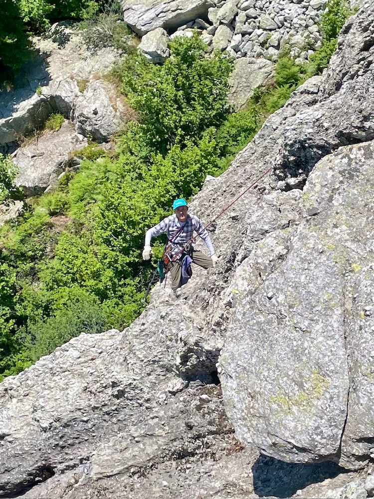 La giornata passa in men che non si dica; Andrea e suo figlio sembrano dei furetti indiavolati che ci ritroviamo sopra la testa mentre assicuriamo, affianco mentre arrampichiamo, sbucano dietro un masso dove ci eravamo seduti a guardare arrampicare i ragazzi. Una giornata epica che sarà ricordata a lungo da tutti noi.