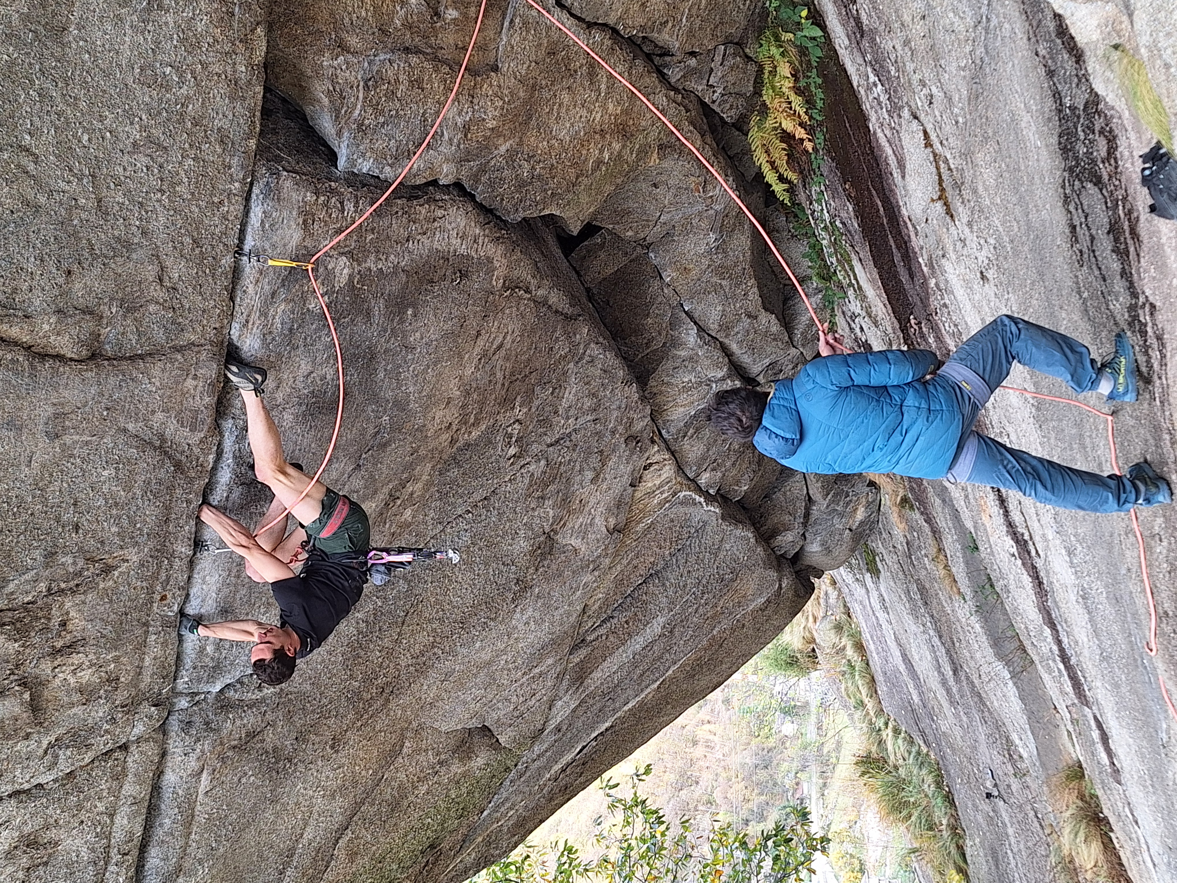 Il programma della Film Crew prevede un giro per luoghi storici nella Valle, ma ormai è tardi e Adam decide di fermarsi anche il giorno successivo. Io butto li che posso, per festeggiare, preparare una pasta a casa mia a Noasca, tutti sorridenti, finalmente anche il regista Ceco, e mi allontano. Marcello rimane con Adam che vuole provare la Pura Pura, un traverso basso, molto duro che va aggiunto in continuità a Greenspit . A detta del suo ideatore, l’inglese e grande specialista di fessure, Tom Randall, il grado sale ad 8c.