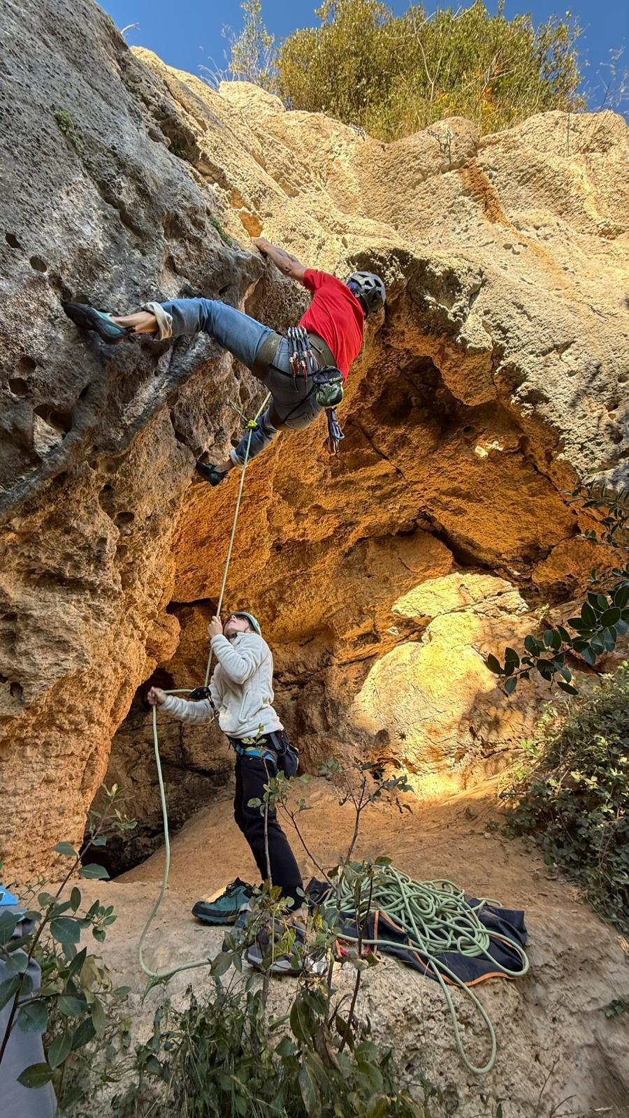 Mettersi in un angolo e sentirli chiacchierare è sempre illuminante; scommetto, con me stesso, chi continuerà ad arrampicare e sicuramente ritroveremo ad altri corsi o sotto una falesia per conto suo, chi ha trovato l’anima gemella per svernare l’inverno e cinguetta con discrezione con la sua/o lei/lui, chi si sta ancora guardando intorno per fare una scelta, non della vita ma almeno sufficiente per andare in falesia sino a primavera.