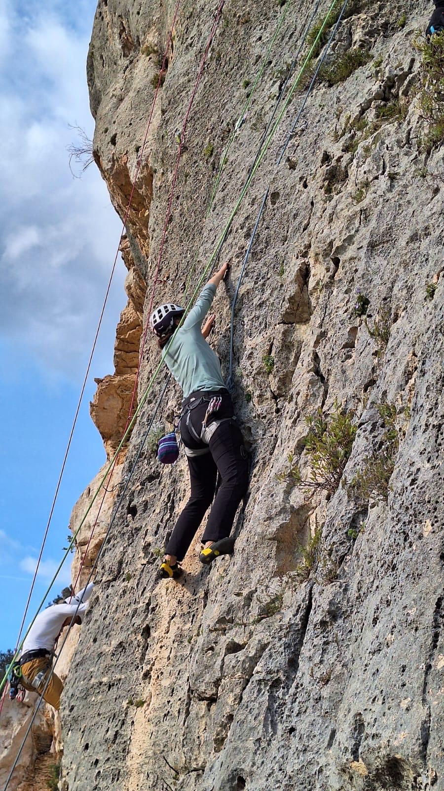 Alla fine, una buona intesa con altre scuole che avevano scelto la stessa nostra falesia, ci permette di scambiarci i tiri così che, a fine giornata, ogni cordata ha consumato 7/8 vie.
