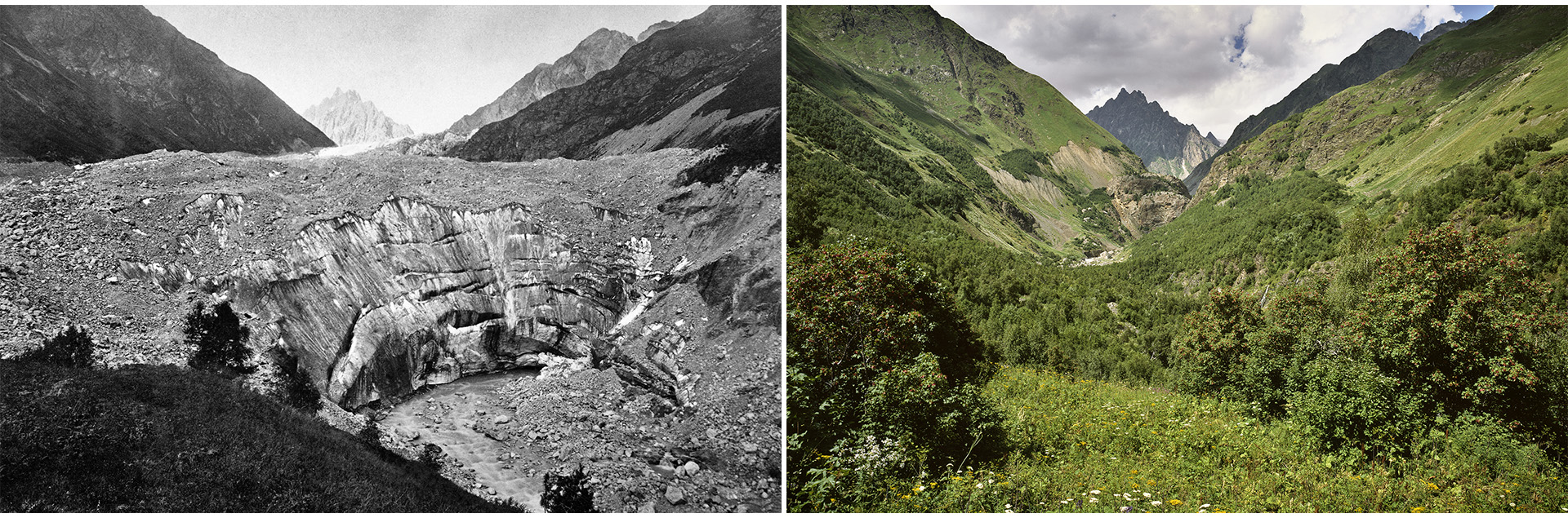 L’esperienza si è posta come obiettivo la realizzazione di una serie di fotografie che ritraggono le storiche vedute dall’esatto punto geografico e nello stesso periodo dell’anno di quelle del passato. La comparazione visiva e le misurazioni scientifiche sul campo documentano il cambiamento e l’inarrestabile fusione dei ghiacci.